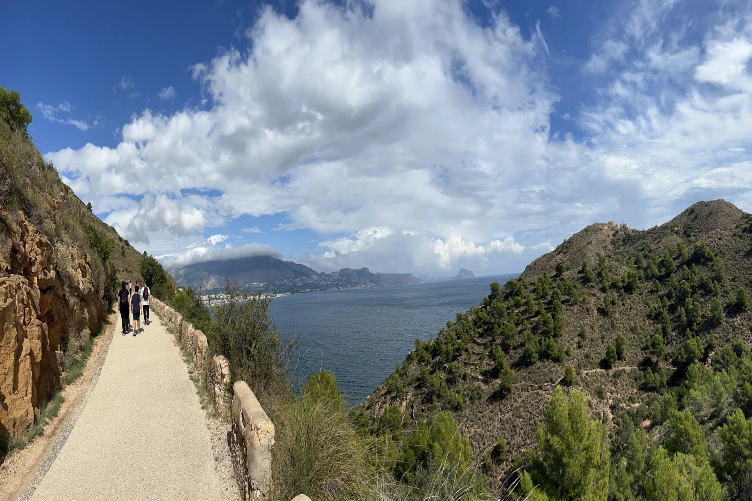 Acantilados marinos espectaculares: se elevan más de 300–400 metros sobre el Mediterráneo, un paisaje que impresiona tanto a niños como a adultos.