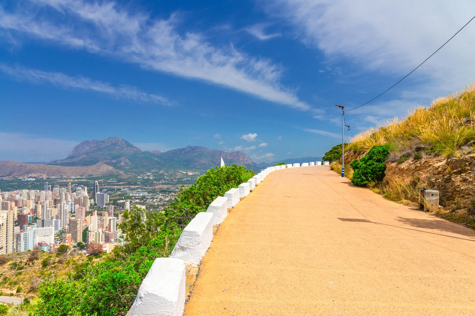 Puntos destacados: vistas aéreas sobre los acantilados de 300–400 metros, panorámicas hacia Benidorm, Albir y la Isla de Benidorm.